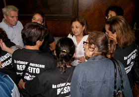 Uma antiga luta da vereadora Telma de Souza (PT) está próxima do fim. Depois de muita pressão por parte das monitoras de creches públicas municipais, durante a última sessão da Câmara de Santos (18/10), houve a promessa por parte do Executivo de que até o dia 28, será enviado um Projeto de Lei tratando das condições de trabalho deste segmento profissional.