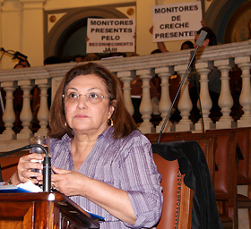 A vereadora Telma de Souza (PT), deputada estadual eleita, criticou ontem (7/10) a falta de vontade política do governo municipal em resolver a questão dos monitores de creche. Ela afirmou que, em flagrante arranjo adminsitrativo, os monitores aparecem no orçamento anual como educadores, mas não recebem como tal. "Eles são lançados, para todos os efeitos, inclusive para recebimento de verbas federais, como professores, mas na verdade, isto não ocorre", afirmou.