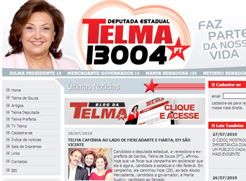 “Vamos usar a internet para chegar onde não podemos ir pessoalmente. O mundo se conecta nesta rede e é importante ter o nosso site de campanha”. Assim Telma se referiu a entrada no ar, hoje (28), do seu mini-portal na internet. Com base em uma plataforma já existente, o site tem novo conteúdo, mais materiais para baixar, além de novas fotos. A Galeria de Fotos será atualizada de acordo com a agenda da candidata, que vai estreitar o contato via web.