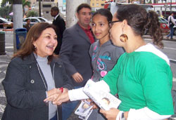 Como coordenadora da Macrorregião do PT da Baixada Santista, Telma acompanhou o senador Aloízio Mercadante (PT-SP) na extensa agenda que ele cumpriu na região, na última segunda-feira 911/08).Mercadante participou a abertura do seminário Santos Export, promovido pelo Sistema A Tribuna de Comunicação em Santos. À tarde, realizou caminhada em Vicente de Carvalho, Guarujá, acompanhado do candidato à reeleição, prefeito Farid Madi (PDT), e de seu candidato a vice, Nélson Fernandes (PT).