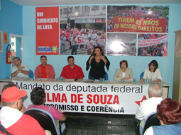 A deputada federal Telma de Souza (PT-SP) defendeu “uma refundação do PT, com o resgate de seus princípios originais”, pela qual, independente do resultado das eleições internas para o diretório nacional, pretende lutar, “a partir das bases e da nossa região”. A declaração foi feita na tarde de sábado (27/08), durante plenária de seu mandato, que lotou o auditório do Sindicato dos Bancários, em Santos.