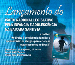 Leia maisApesar de alguns avanços, ainda é muito preocupante a situação de crianças e jovens que vivem em abrigos, sendo poucas as instituições que adotam os preceitos estabelecidos no Estatuto da Criança e do Adolescente (ECA). Essa conclusão foi exposta pela economista Enid Rocha Andrade da Silva, coordenadora do livro “O direito à convivência familiar e comunitária: os abrigos para crianças e adolescentes no Brasil”, lançado na noite da última sexta-feira (24/06), na OAB de Santos, durante a solenidade que marcou o lançamento do Pacto Nacional Legislativo pela Infância e Adolescência na Baixada Santista. Veeradores de vários municípios da região aderem ao compromisso.