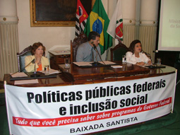 Leia maisTécnicos dos ministérios da Saúde, Educação, Desenvolvimento Social, Cultura e Cidades discorreram na segunda-feira (27/06), durante cerca de três horas, sobre programas do Governo Federal que podem, por meio de convênios e parcerias, serem implantados nos municípios da Baixada Santista. O seminário “Políticas Públicas Federais e Inclusão Social”, organizado pela deputada federal Telma de Souza (PT-SP), reuniu, na Câmara Municipal de Santos, mais de 250 pessoas, entre representantes de prefeituras e membros de organizações não-governamentais da região.