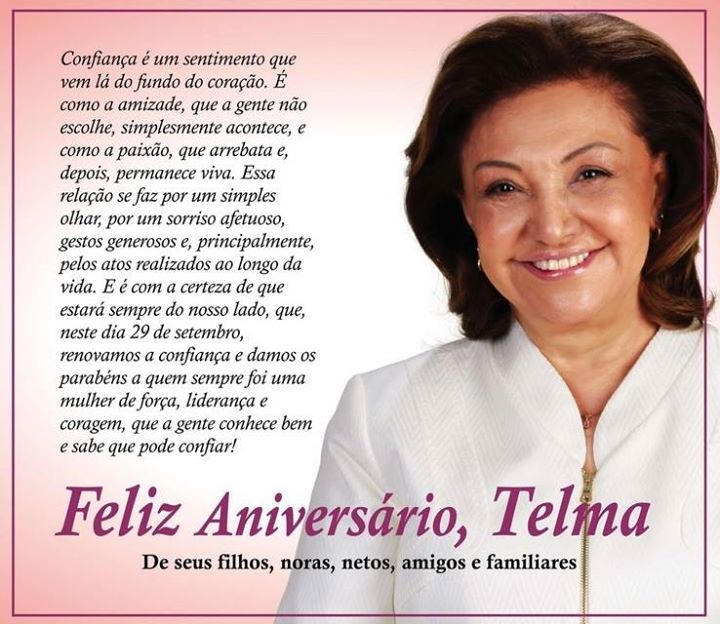 Aniversário de Telma é comemorado nesta segunda-feira (29/9)