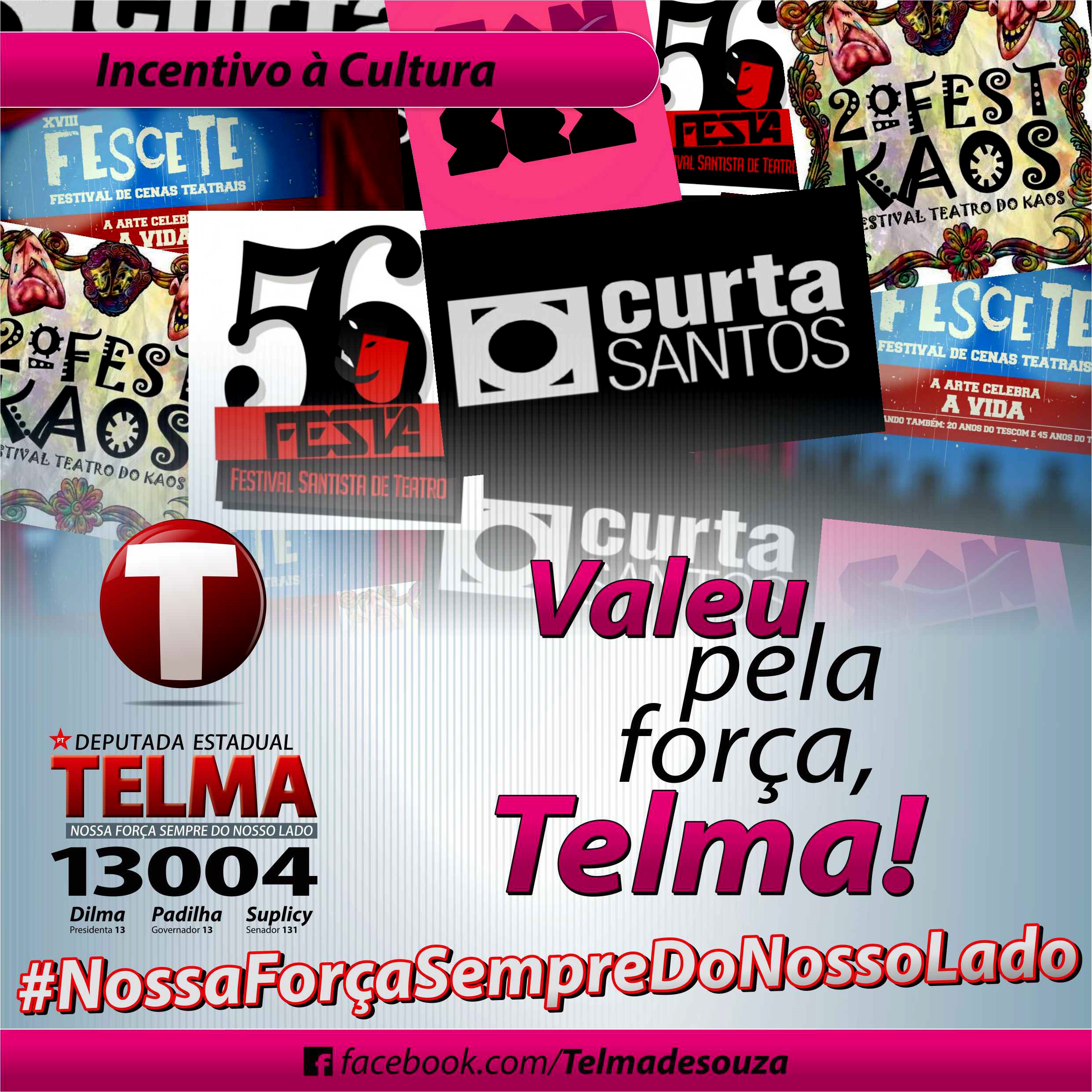 Deputada sempre acreditou e apoiou movimentos e festivais na Baixada Santista desde a origem, como o Curta Santos e o Festkaos, dos quais é madrinha