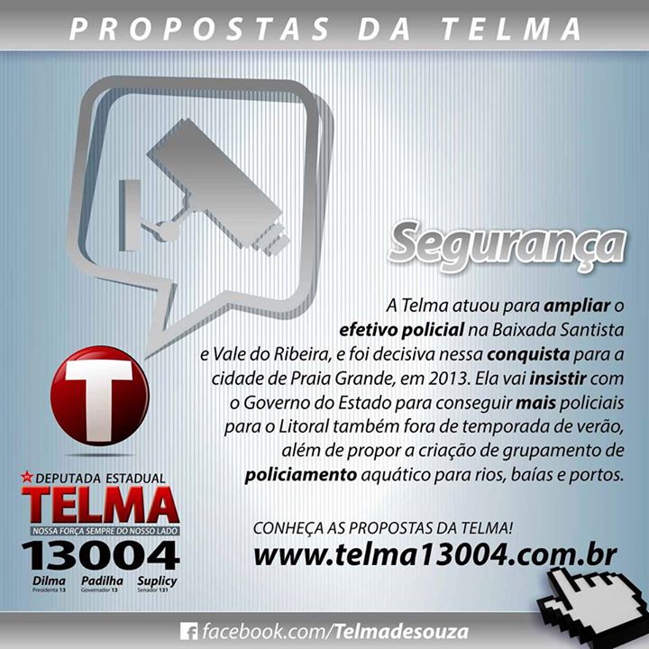 Telma propõe melhor remuneração para os policiais, atuação no combate à criminalidade e, principalmente, oferecimento de oportunidades para a população, particularmente os jovens