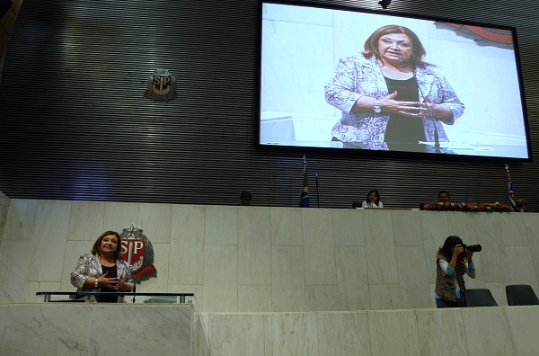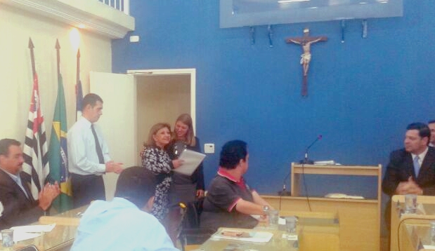 Deputada Telma de Souza recebeu moção de aplauso pelo apoio à iniciativa da vereadora Aline do Rosarial
