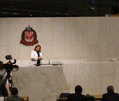 Autoridades, empresários e populares prestigiaram o lançamento da Frente Parlamentar Estadual para a Indicação de Santos como sub-sede da Copa do Mundo de 2014, na noite de sexta-feira (26), na Câmara Municipal de Vereadores.
