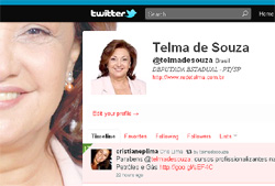 Navegadores dos principais sites de relacionamentos, as chamadas redes sociais, comemoraram a volta de Telma de Souza à Assembleia Legislativa do Estado de São Paulo - Alesp. Ela recebeu desde votos de sucesso, até sugestões para a realização de um mandato promissor. As manifestações mostram que o trabalho da parlamentar é admirado e reconhecido por moradores de todas as regiões.