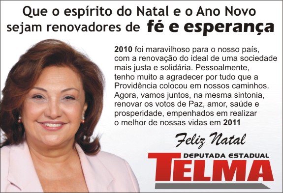 A ex-prefeita de Santos,vereadora Telma de Souza (PT), foi diplomada ontem (17/10) como deputada estadual,cargo para o qual foi eleita em 3 de outubro último. Para ela, foi um dia especial para a democracia. O plenário da Assembléia Legislativa foi palco da diplomação dos deputados estaduais, federais, senadores e governador eleitos pelo estado de São Paulo. Dezenas de políticos receberam o documento que lhes confere o poder de administrar e legislar no maior estado brasileiro.
