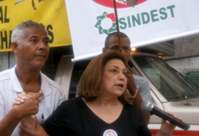 Em sua primeira aparição pública, ontem (25/11), duas semanas após uma cirurgia, a vereadora e deputada estadual eleita Telma de Souza (PT), se posicionou contra projeto de lei do Executivo santista que retira benefícios do funcionalismo. O projeto será votada em breve, na Câmara de Vereadores, e Telma, que saiu exclusivamente para participar de ato dos servidores, defendeu a não aprovação da matéria.