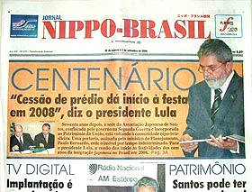 Leia maisTeve grande repercussão na imprensa dirigida à colônia nipônica a cessão da casa da Associação Japonesa de Santos à comunidade nipo-brasileira. Jornais como o “Nippo-Brasil”, “Nikkei” e outros deram grande destaque à assinatura da portaria do ministro do Planejamento, Paulo Bernardo, que autorizou a cessão do imóvel, numa cerimônia no Palácio do Planalto, com a presença do presidente Lula: do ministro das Relações Exteriores, Celso Amorim, de membros da comunidade japonesa e da deputada federal Telma de Souza (PT-SP), que atuou durante vários anos em defesa da devolução do imóvel, confiscado durante a Segunda Guerra Mundial.
