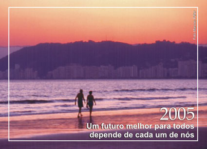 Ano Novo, tempo de reflexão, renovação e esperança de um futuro melhor para todos nós. Um futuro que nasce e cresce dos sonhos que cultivamos, um futuro que é construído por cada um de nós, a cada dia, em todos os lugares.Que 2005 traga muita saúde, paz e a certeza de que, apesar dos obstáculos que surgem durante o caminho, um futuro melhor é realmente possível. Nesse novo ano, estaremos mais uma vez juntos, com a confiança e o carinho que nos une. Boas festas e um feliz 2005 para você e toda a sua família. Telma de SouzaDeputada Federal PT-SP