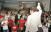 Leia maisAlegria, confiança na vitória e muita vibração dominaram o ambiente na plenária final da campanha da Coligação Santos por Santos, na noite de quarta-feira (29/09), neste primeiro turno de eleições O alto astral que prevaleceu durante toda esta etapa da campanha garantiu o clima de festa entre as pessoas que lotaram o auditório do Sindicato dos Metalúrgicos para ouvir e aplaudir a candidata Telma de Souza e seu vice, Pablo Greco.