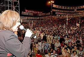 Leia maisTelma e a Coligação Santos por Santos fizeram o maior comício de todas as campanhas eleitorais já realizadas na cidade, reunindo mais de 10 mil pessoas na noite de sexta-feira (24/09), segundo cálculo do Corpo de Bombeiros, na praça da Paz Universal, na Zona Noroeste. "Estou há 10 anos em Brasília, está na hora de voltar para a minha terra, para cuidar de vocês", disse a candidata, para a multidão que foi à praça da Paz Universal dar o seu apoio e assistir ao show do cantor Leonardo.