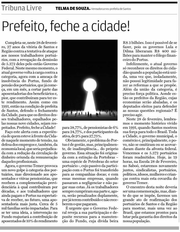 Leia maisVereadora e ex-prefeita sugere um novo fechamento da Cidade para exigir que o governo federal reveja os cortes de aposentadorias
