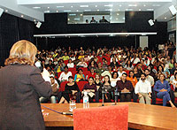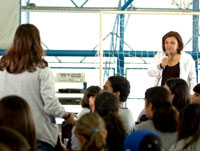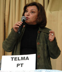 Leia mais"Acho que a mulher paga um preço severo quando ousa entrar no mundo masculino. Os ataques pessoais e mentirosos que meus adversários me fazem são decorrentes da falta de argumentos concretos para me fazer oposição no campo da política. O pior é que nada é dito olho no olho, mas sim através de uma fala subterrânea." Dessa forma Telma respondeu à indagação de uma adolescente, durante palestra realizada nesta quinta-feira (16/09) a alunos do Colégio Jean Piaget, sobre como lidava com as críticas de cunho pessoal contra ela, que sempre voltam a circular durante os períodos eleitorais.