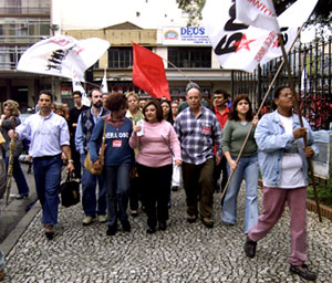 Leia maisA candidata a prefeita de Santos pela coligação "Santos por Santos", deputada Telma de Souza (PT), deu início dia 6 de julho à campanha 2004 com uma caminhada pelo centro da cidade, acompanhada pelo candidato a vice, Pablo Greco (PV), e candidatos a vereador dos partidos coligados. O ponto de partida foi o local onde está o vestiário das "margaridas", as varredoras de rua do serviço de limpeza pública.