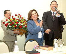 Leia mais"A vida nos ensina muitas coisas, em especial a superarmos nosso egoísmo e nossa pequenez. A vida foi também muito generosa comigo. Tenho dois filhos saudáveis, tenho saúde, pude exercer diversos cargos públicos que me deram a oportunidade de servir e lutar pelo que acredito. Por isso, não tenho mais nada para pedir a Deus, a não ser a oportunidade de continuar servindo." Dessa forma, a candidata Telma de Souza agradeceu ao apoio de lideranças evangélicas que se reuniram segunda-feira (25/10) pela manhã, no Parque Balneário Hotel.