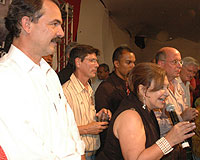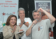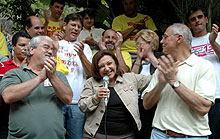 Leia maisA candidata Telma de Souza, acompanhada do deputado estadual Fausto Figueira, compareceu à reunião festiva realizada na tarde de domingo (24/10) pelo grupo de discussão política Atitude 13 com moradores do bairro do Campo Grande. Telma pediu um esforço final nesta última semana de campanha: “Vamos colorir esta cidade com nossas camisetas, mostrar de que lado nós estamos”, disse, indicando o Comitê Central como local de distribuição de material de propaganda. A candidata aproveitou para alertar sobre os boatos espalhados pelo adversário: “Quem disse que esta cidade não gosta do PT? Temos dois deputados estaduais, dois deputados federais, elegemos a maior bancada de vereadores, todos do PT. Nossos corações abrigam os sonhos das pessoas, coisas que eles não fazem”.