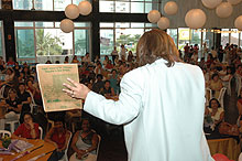 A candidata Telma de Souza passou a tarde de sábado (24/10) reunida com centenas de mulheres, de diferentes faixas etárias, em um chá com música ao vivo no salão do Clube Caiçara. Para o encontro, organizado pelo Comitê de Mulheres da campanha, foram convidadas mulheres consideradas multiplicadoras de opinião, para conhecerem melhor as propostas da candidata e trocar idéias. A reunião teve presenças femininas de destaque na política como a deputada federal Mariângela Duarte, a deputada estadual Maria Lúcia Prandi, a vereadora e presidente do PT em Santos, Cassandra Maroni. Em número reduzido, os homens também se fizeram presentes, como o vereador reeleito Ademir Pestana, que compareceu com a família.